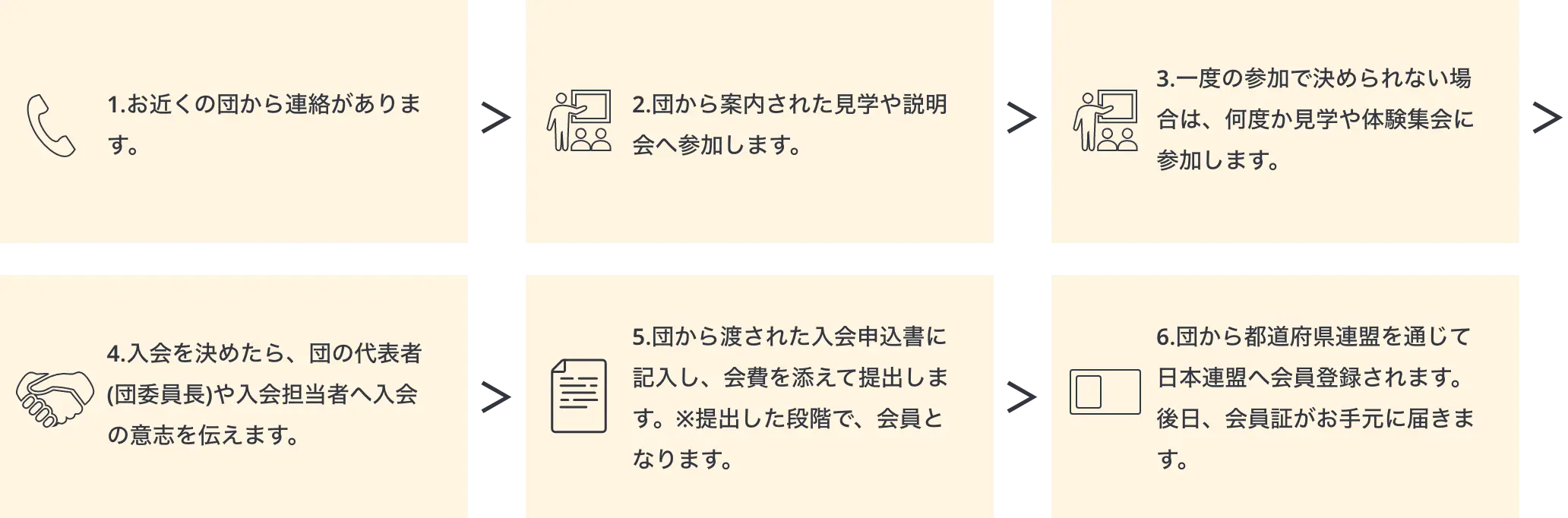 入会をお考えの方向けに、入会の流れをご紹介します。